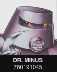 Dr. Minus is a robotic (or cybernetic) villain, who's obsessed with Subtraction. He planned to destroy the entire Galactic Forces base, one ship at a time. He shot down Blasternaut's ship, as it searched for the Lost City. He was later defeated when Blasternaut and his friends reactivated the Lost City Ship; his whole fleet was no match for that ship. ("Math Blaster 2: The Lost City")